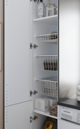 Fleksible bruksområder: Tenk gjerne innovativt og lag bruksområder som kan ha flere funksjoner. For eksempel foldbare benkeplater, vegghengt tørkestativ, integrert strykebrett, skyvedører med speil foran vaskemaskin, modulære hyller og skap.
